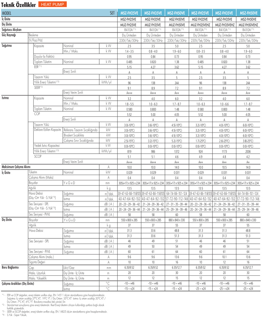 | İç Ünite-Isıtma(Y/O/D/ÇD) | |||